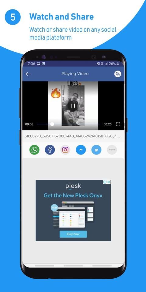 * Share videos on any messenger or social media with just a single click