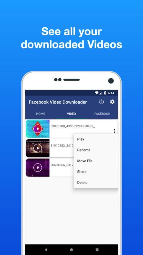 फेसबुक से वीडियो डाउनलोड करने वाला वीडियो डाउनलोडर फेसबुक से वीडियो डाउनलोड करने के लिए सबसे प्रिय एप है।