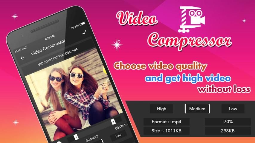 वीडियो कंप्रेसर: - वीडियो को विभिन्न आकार और गुणवत्ता में संपीड़ित करें जो फोन मेमोरी को बचाने के लिए उपयोगी है।