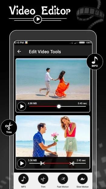 वीडियो संपादक आपको तेजी से संपादित करने और संपादित करने में आसान, एमपी 3 में कनवर्ट करने, फ़ोटो पकड़ने, ध्वनि हटाने और वीडियो से ध्वनि को बदलने में मदद करता है।