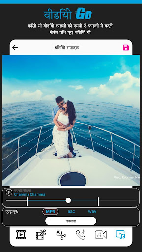 - ऑडियो वीडियो मिक्स (वीडियो पृष्ठभूमि संगीत परिवर्तक) का उपयोग वीडियो में संगीत जोड़ने के लिए ट्रिम को प्रबंधित करने के साथ संगीत सूची से गीत का चयन करें