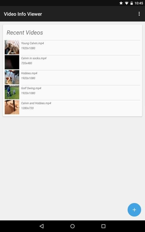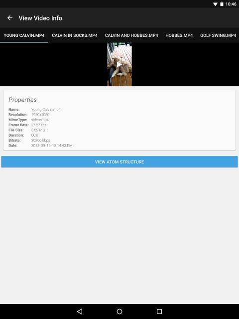 वीडियो जानकारी व्यूअर आप अपने एंड्रॉयड डिवाइस पर वीडियो के बारे में मेटाडेटा देखने के लिए अनुमति देता है एक खुला स्रोत अनुप्रयोग है. संकल्प, फ्रेम दर, और अधिक का निरीक्षण किया.