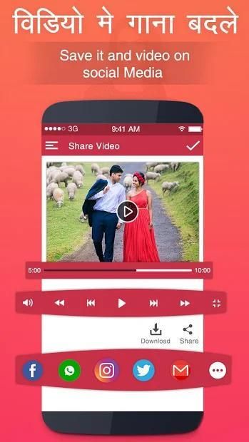 किसी वीडियो के पृष्ठभूमि संगीत को बदलने के लिए, इस ऑडियो संपादक और वीडियो निर्माता का उपयोग करें। इस वीडियो मिक्सर ऐप में, यदि ऑडियो की लंबाई वीडियो की तुलना में अधिक है, तो यह स्वचालित रूप से वीडियो की लंबाई तक छंटनी होगी। यदि ऑडियो की लंबाई वीडियो की तुलना में कम है, तो ऑडियो को वीडियो के साथ जोड़ा जाएगा। इन सभी परिचालनों को उच्च गति के साथ किया जाता है। इस वीडियो संपादन ऐप और ऑडियो संपादक संगीत ऐप, या वीडियो मिक्सर और संपादक का उपयोग कर फेसबुक, जीमेल, व्हाट्सएप इत्यादि जैसे सोशल मीडिया नेटवर्क पर वीडियो साझा करें।