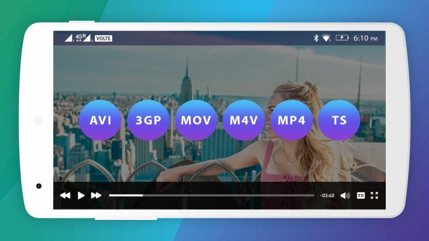 यह AVI, 3GP, M4V, MOV, MP4, MKV, TS, MPG, FLV, आदि सहित सभी लोकप्रिय वीडियो प्रारूपों का समर्थन करता है ... यह हार्डवेयर डिकोडिंग का उपयोग करता है, जो वीडियो प्ले को स्मूथ बनाता है। यह स्वचालित रूप से फोन मेमोरी और एसडी कार्ड में वीडियो का पता लगा सकता है, जिससे आप जल्दी से वीडियो का पता लगा सकते हैं और खेल सकते हैं। वीडियो प्लेयर सभी अल्ट्रा हाई डेफिनिशन वीडियो चला सकता है।