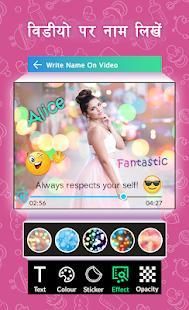 VIdeo Pe Name Likhe App offers a very easy and intuitive platform to watermark your videos with text And Image of your choice. Create your own watermark video with custom text and images.Best thing is you can adjust its position, colour and opacity of text watermark or image watermark over your video to personalize or copyright video.
