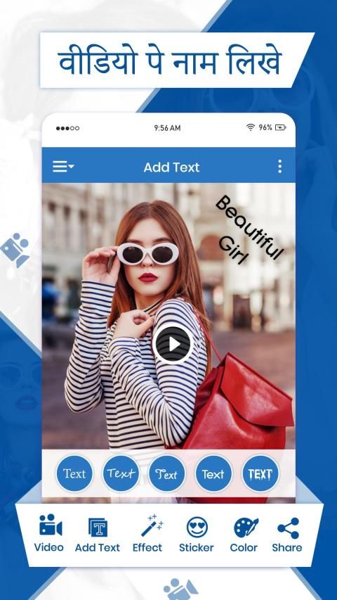 Video Pe Name Likhe : Text On Video allows you Add logo as well as text into your favorite videos with your choice and merge it into single video.Here you can having facility to create your own watermark video with your custom image or text from your phone. It is more useful for all the users who want to add watermark in video.