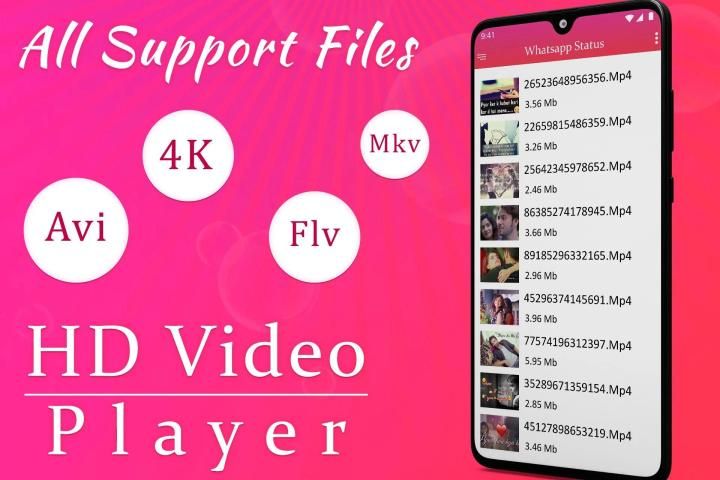 वीडियो प्लेयर AVI, MP4, WMV, RMVB, MKV, 3GP, M4V, MOV, TS, MPG, FLV आदि सहित लगभग सभी वीडियो प्रारूपों का समर्थन करता है, बस आपके डिवाइस डिकोडर पर निर्भर करता है।