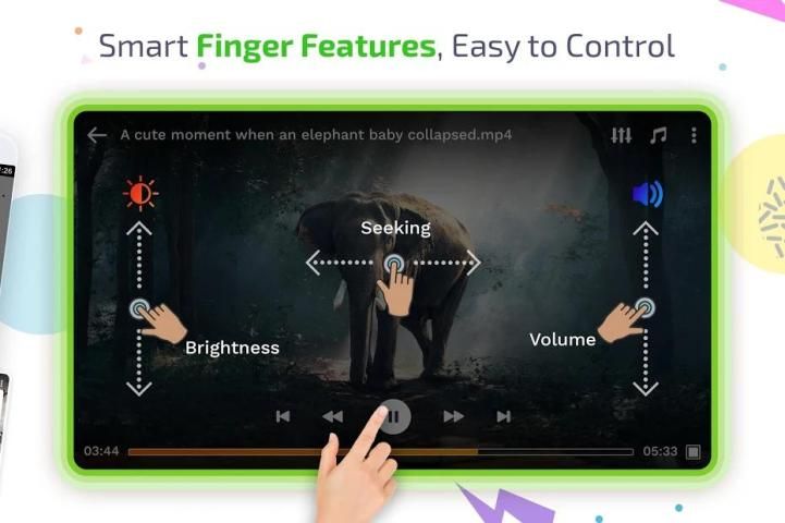 Easy to control volume, brightness and playing progress by sliding on playback screen.