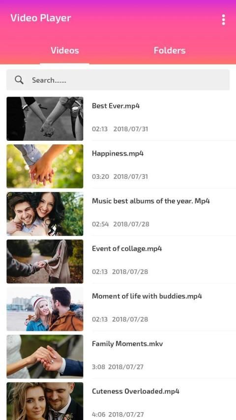 वीडियो प्लेयर AVI, MP4, WMV, RMVB, MKV, 3GP, M4V, MOV, TS, MPG, FLV आदि सहित लगभग सभी वीडियो प्रारूपों का समर्थन करता है, बस आपके डिवाइस डिकोडर पर निर्भर करता है।