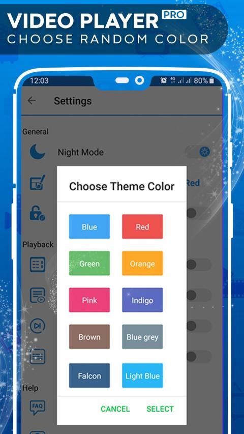 When you are bored with old theme please select your favorite theme in theme list. And enjoy Video Player pro with their favorite movie.