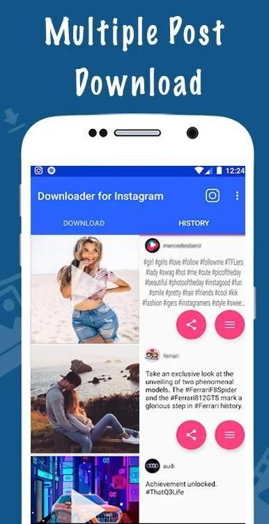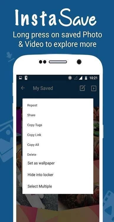 - आप बस एक स्पर्श के साथ Instagram फोटो और वीडियो डाउनलोड कर सकते हैं