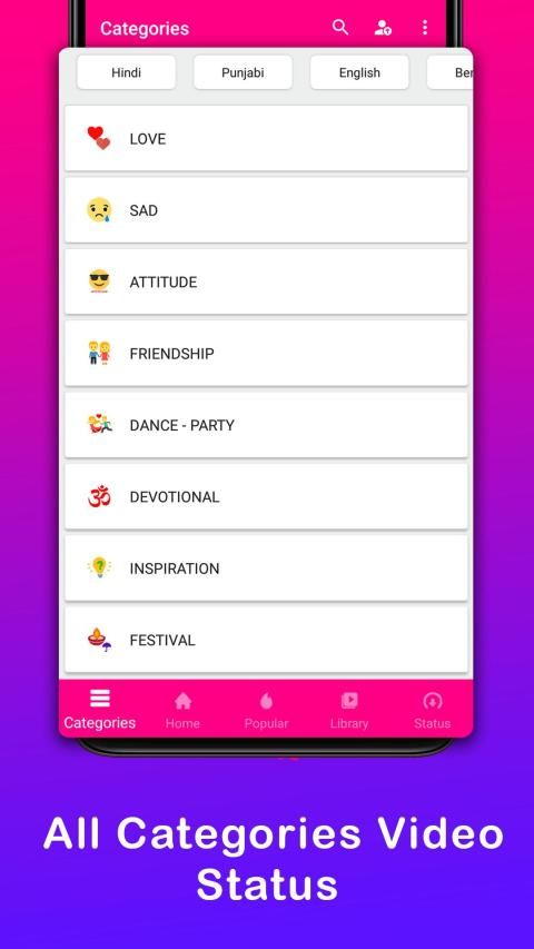 Video Status 2019 is the best free short video Status app to watch, download, and share trending videos & popular videos for whatsapp Videos and other social media. In Video Status 2019, Lyrical video songs status, You can watch and Download Video Status in 9 Indian languages like Hindi, English, Haryanvi, Bhojpuri,Tamil, Marathi, Gujarati, Bengali and Punjabi.