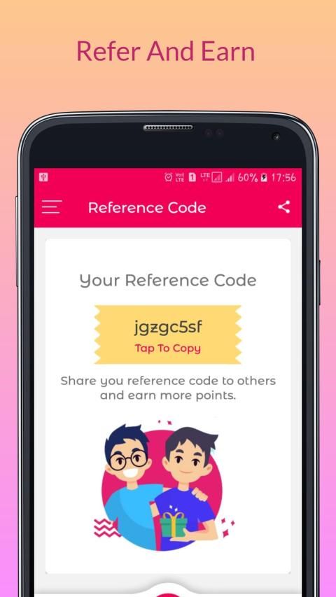 • अपने संदर्भ कोड को अन्य के साथ साझा करें और अपने संदर्भ कोड के साथ प्रत्येक उपयोगकर्ता रजिस्टर के लिए इनाम अंक प्राप्त करें।