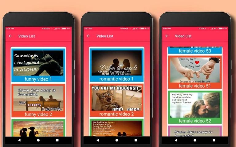 (2) प्यार वीडियो और रिश्ता वीडियो (प्यार का दर्जा वीडियो)।
