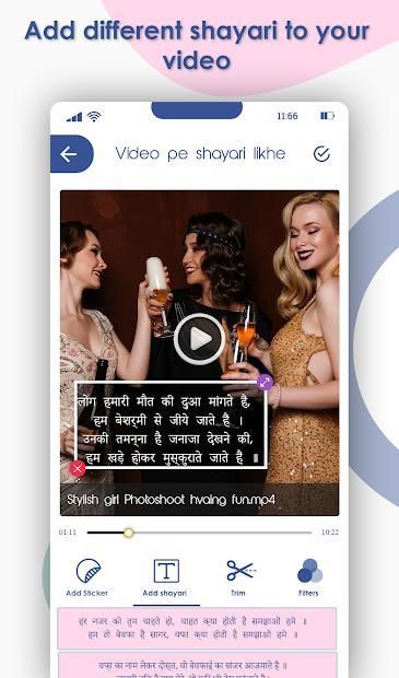 Video Pe Shayari Lagaye is an app allows you to add shayri on the video.