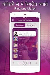 अपने Android डिवाइस पर संगीत के साथ असीमित मुफ्त रिंगटोन बनाने, या मक्खी पर नए लोगों को रिकॉर्ड! यह सब पूरी तरह से है मुफ्त रिंगटोन निर्माता नि: शुल्क एप्लिकेशन रिंगटोन, अलार्म, सूचनाएं और संपर्क रिंगटोन बनाता है।