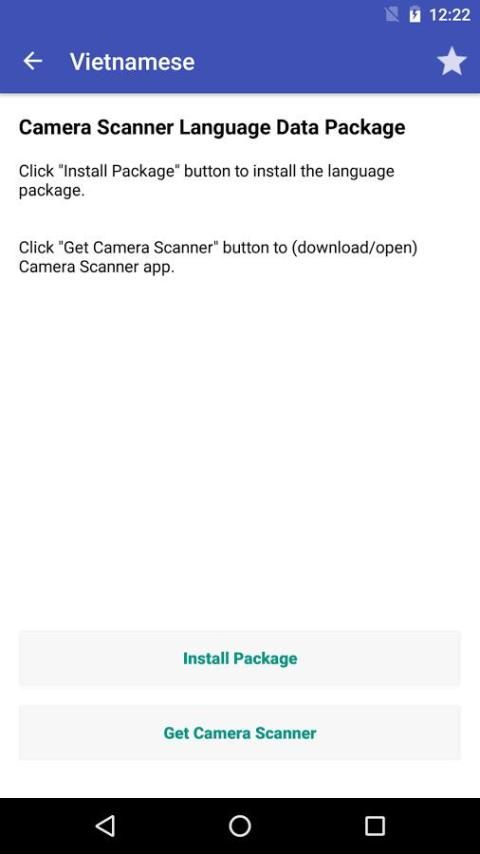 विशिष्ट भाषा पैकेज स्थापित करें और यह खुला। फिर डेटा स्थापित करने के लिए प्रेस "पैकेज स्थापित करें" बटन (आप कैमरा स्कैनर एप्लिकेशन को स्थापित नहीं किया है, तो आप यह पहली बार स्थापित करने की आवश्यकता)। कैमरा स्कैनर एप्लिकेशन खोलें और चित्र से पाठ पहचान करने के लिए एक तस्वीर पर ओसीआर बटन दबाएँ!