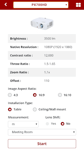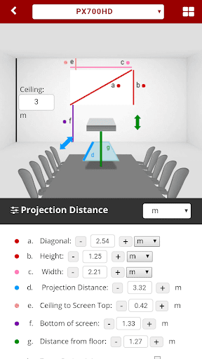 व्यूसोनिक प्रोजेक्टर प्रोजेक्टर के मूल और उन्नत जानकारी को संक्षेप में उपयोगकर्ताओं, इंस्टॉलर्स या वितरकों को समाप्त करने के लिए सारांशित करता है।इसमें विभिन्न परिदृश्यों में उपयुक्त प्रोजेक्टर चुनने के लिए व्यावहारिक जानकारी का एक गुच्छा शामिल है।कोई फर्क नहीं पड़ता कि छोटे मीटिंग रूम, मध्यम कक्षा, या बिग हॉल, व्यूसोनिक प्रोजेक्टर आपको बताता है कि प्रोजेक्टर को कमरे की छत की ऊंचाई, प्रोजेक्टर के स्क्रीन आकार, पहलू अनुपात इत्यादि के अनुसार कितना दूर रखा जाना चाहिए। बस कई आंकड़े इनपुट करें, परिणाम प्रदर्शित किया जाएगामाप के साथ सिमुलेशन परिदृश्यों में।आप तुरंत दूरी को समायोजित करने के लिए उंगली का उपयोग कर सकते हैं।
