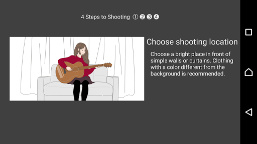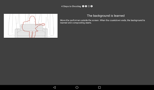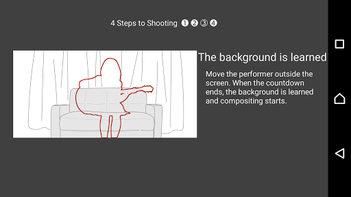- कृपया पृष्ठभूमि को बदलने के लिए शूटिंग करते समय स्मार्टफ़ोन या टैबलेट को स्थानांतरित न करें।