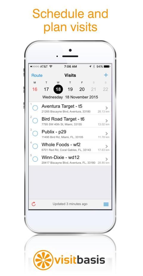 VisitBasis, उनकी गोलियाँ और smartphones का उपयोग कर खुदरा डेटा संग्रह प्रदर्शन करने के लिए क्षेत्र के प्रतिनिधि के लिए सक्षम बनाता क्षेत्र बल स्वचालन प्रदान करता है और और क्षेत्र की बिक्री प्रबंधन सरल करता है।