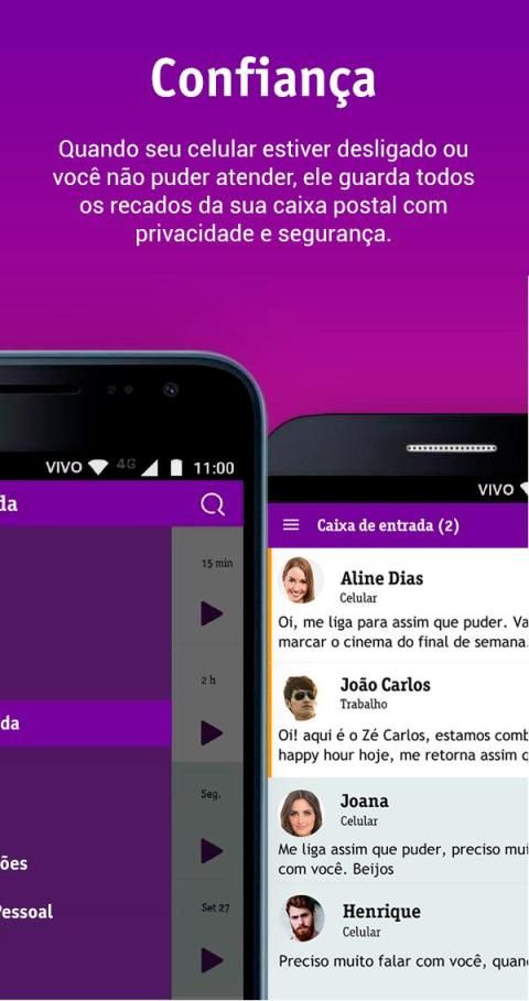 : Quando seu celular estiver desligado ou você não puder atender, ele guarda todos os recados da sua caixa postal com privacidade e segurança.