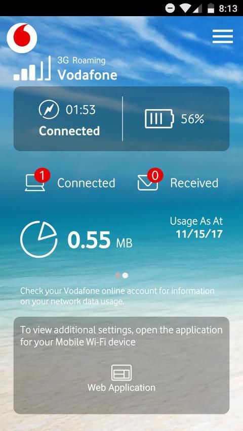 The Vodafone Mobile Wi-Fi Monitor app gives an overview of your Mobile Wi-Fi connection, in addition to allowing you quick and easy access to your online settings. The Vodafone Mobile Wi-Fi Monitor makes it easy to check: