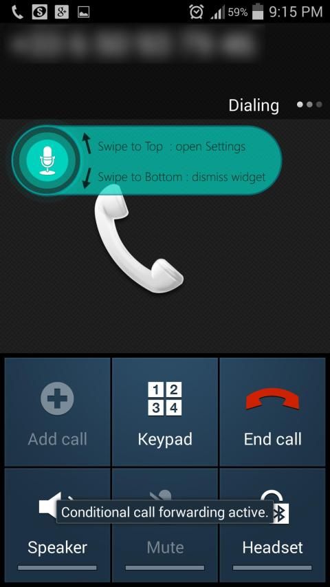 कॉल अपने नेटवर्क पर रखा जाता है कि ध्यान दें, कॉल अंतरफलक पर एक विजेट आपके आवेदन कि कॉल के दौरान सक्रिय होता है कि सुनिश्चित करने के लिए दिखाया गया है।