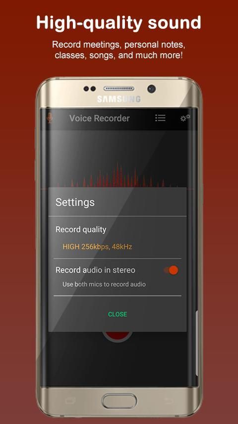 Voice recorder can record most of your sound and voice. You can record a business meeting, a lecture, an interview. It also known as: song recorder, music recorder.