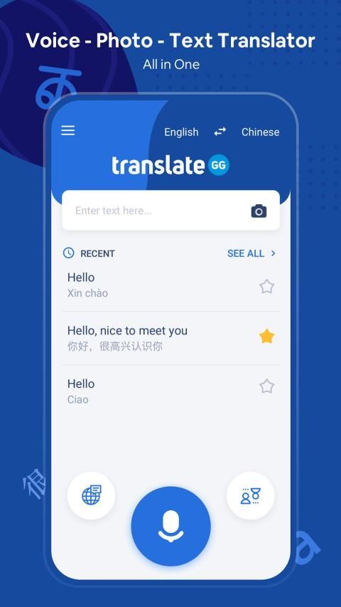 - अध्ययन, काम और यात्रा के लिए सभी कार्यात्मकताओं के साथ एकीकृत: फोटो अनुवादक, कैमरा अनुवादक, आवाज अनुवादक, पाठ अनुवादक, वर्तनी परीक्षक और शब्दकोश।