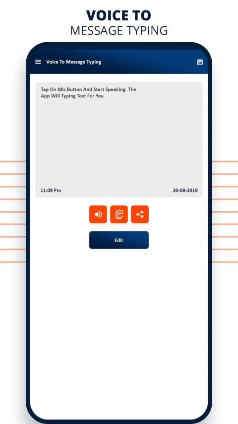 Voice to Message Typing - Speech to Text app provide user to get their Audio in the form of Voice to Message Typing - Speech to Text. Now, with Voice to Message Typing - Speech to Textyou can convert voice note to text accurately because it is a Voice typing in all languages ! It converts audio of all languages. Easily translate audio to text within no time with all new voice to Text converter . Voice to Message Typing - Speech to Text online voice recognition in all languages.