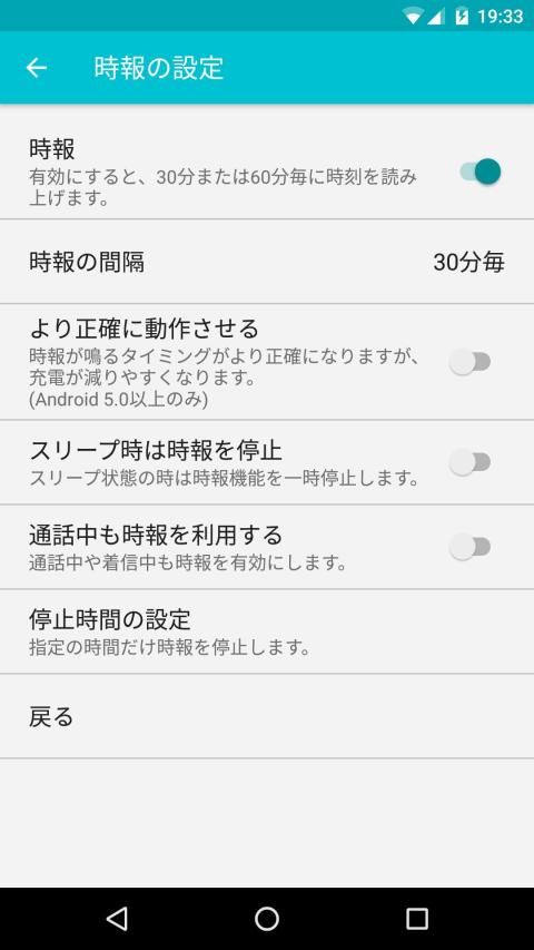 寝る時間や学校・仕事の間など、指定の時間だけ時報を止める設定もできます。