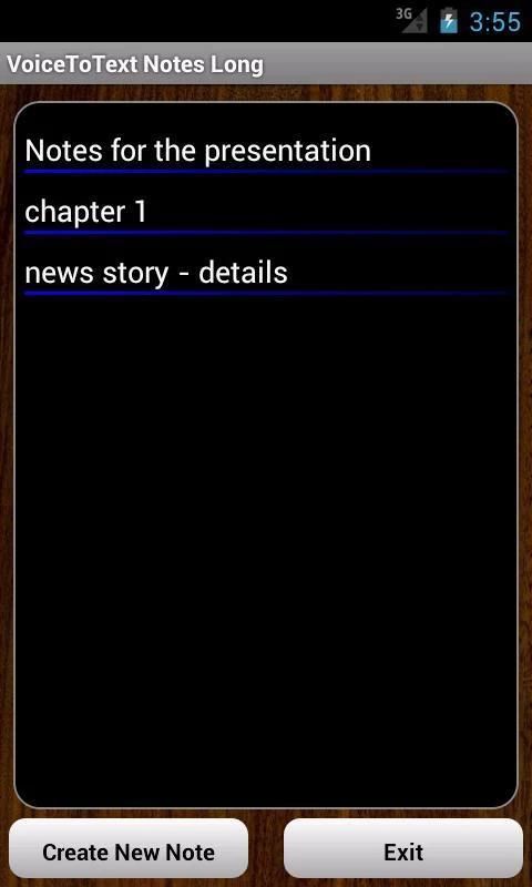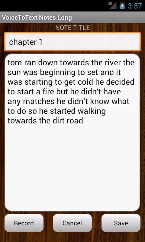 This is a app that lets you create long notes. You can create each note by recording your voice (the app will convert your spoken message to text automatically) or you can type in the note using your phone's keyboard. Each recording can last up to 40 seconds. This is ideal for dictation, recording long messages or stories.