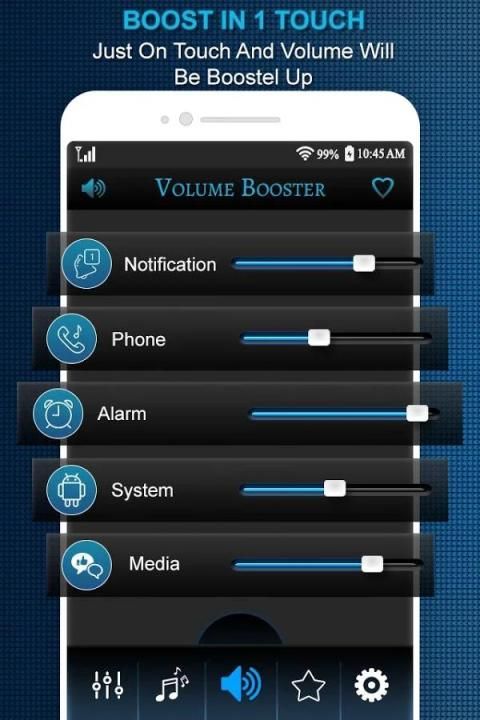 वॉल्यूम बूस्टर: बास बूस्टर और तुल्यकारक कि सभी ध्वनि धाराओं (संगीत, आवाज, अलार्म, प्रणाली) के लिए एंड्रॉयड फोन मात्रा को नियंत्रित करता है एक उत्कृष्ट वॉल्यूम नियंत्रण एप्लिकेशन है। आप आसानी से सिर्फ एक कुंजी के द्वारा अधिकतम करने के लिए अपने फोन ध्वनि बढ़ा सकते हैं।