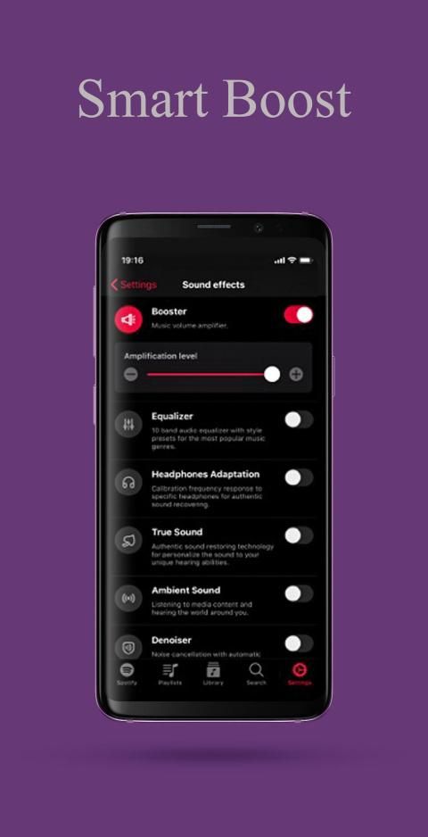 एप्लिकेशन एकीकृत एंड्रॉइड इक्वलाइज़र को समायोजित करने के लिए कई विशेष एल्गोरिथ्म का उपयोग करता है, जिसके लिए आपको एक ज़ोरदार और स्पष्ट ध्वनि मिलती है। इसका एम्पलीफायर आपकी आवाज़ और देता है, सुपर लाउड वॉल्यूम बूस्टर, इसका मतलब है कि उच्च वॉल्यूम बूस्टर सुपर लाउड, फोन वॉल्यूम बढ़ाएं।