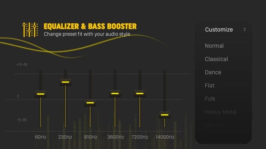 ✓ Equalizer enhance bass, music booster volume loud and other sound effects.