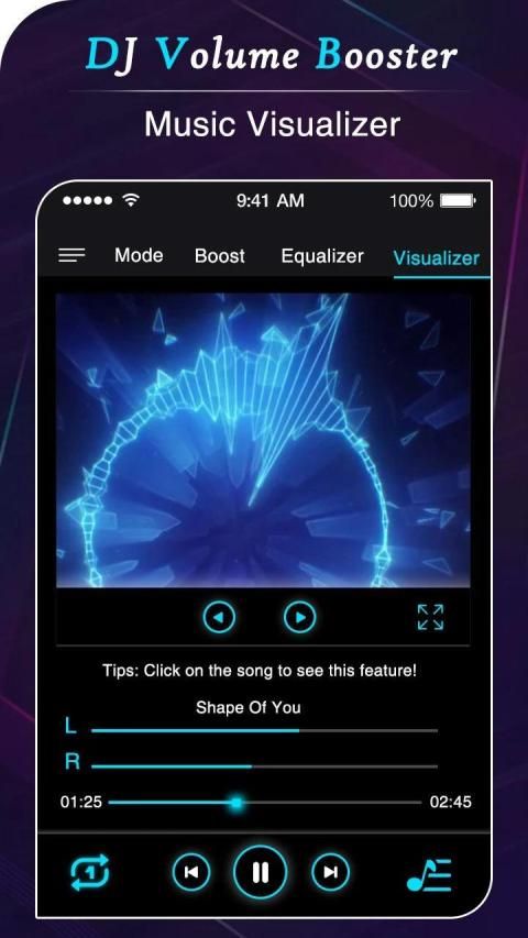 - अद्भुत ध्वनि स्पेक्ट्रम: आप जिस समय गाने सुन रहे हैं, उसी समय आप अद्भुत दृश्य ध्वनि स्पेक्ट्रम देख सकते हैं। सभी साउंड स्पेक्ट्रम ऑडियो रिदम के अनुसार चलते हैं।