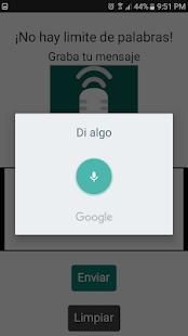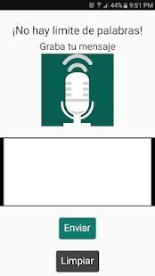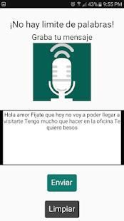 Esta App te permitirá grabar un mensaje con tu voz y te permitira enviarlo como texto al contacto que elijas. Es compatible con Whatsapp, facebook, etc.