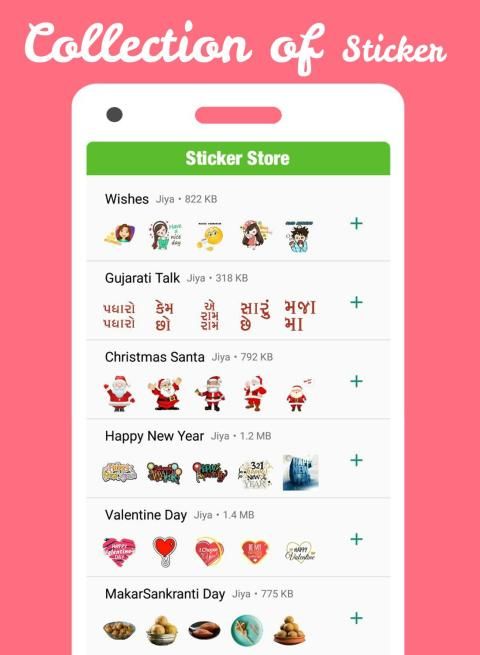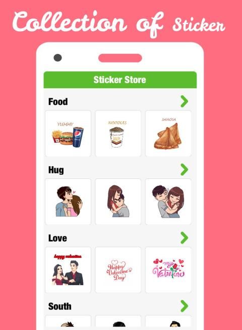 ► ऐप में विभिन्न श्रेणियों में ऑर्डर किए गए सभी प्रकार के स्टिकर शामिल हैं।