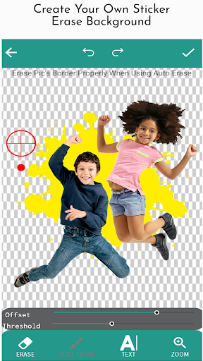 एक ऐप में पृष्ठभूमि इरेज़र सहित छवि / फोटो और टेक्स्ट स्टिकर।