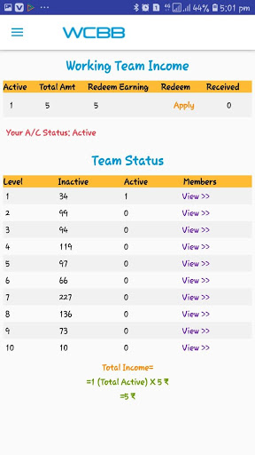 5 रुपय प्रति सदस्य 10 लेवल तक
