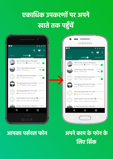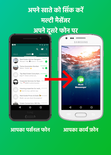 व्हाट्सएप के लिए मल्टी मैसेंजर - दूसरे फोन में क्लोन / सिंक व्हाट्सएप अकाउंट। उसी व्हाट्सएप को क्लोन / सिंक किए गए फोन से एक्सेस करें।