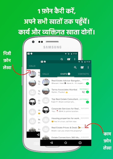 मल्टी मैसेंजर फॉर व्हाट्सएप आपको एक डिवाइस में दो व्हाट्सएप अकाउंट चलाने की अनुमति देता है या आप एक ही व्हाट्सएप अकाउंट को कई डिवाइस पर भी चला सकते हैं। यह पूरी तरह से आपके ऊपर निर्भर है!