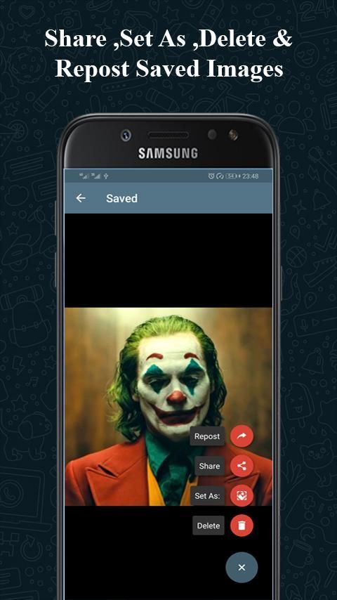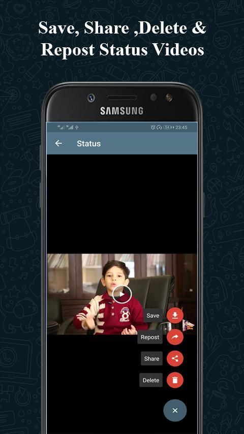 व्हाट्सएप- व्हाट्सएप स्टेटस सेवर एक एप्लीकेशन है जो आपको किसी भी व्हाट्सएप वर्जन जैसे GBWhatdapp, व्हाट्सएप गोल्ड और व्हाट्सएप बिजनेस से तस्वीरों और वीडियो को बचाने की सुविधा देता है।