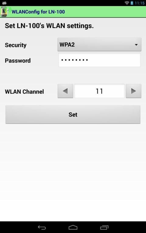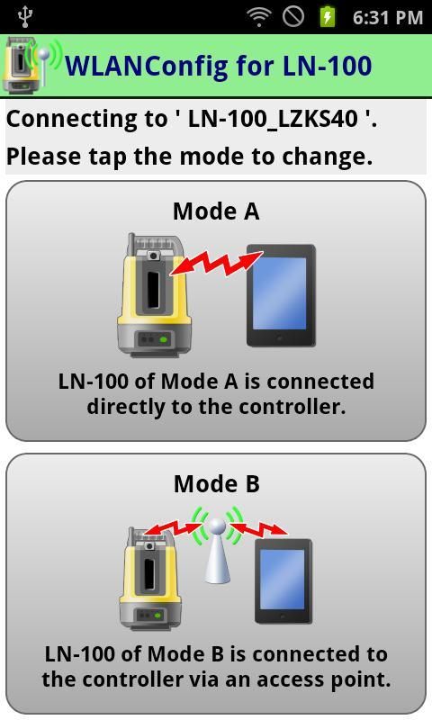 Layout navigator LN-100 communicates with a terminal using WLAN. This application can change WLAN settings of LN-100.