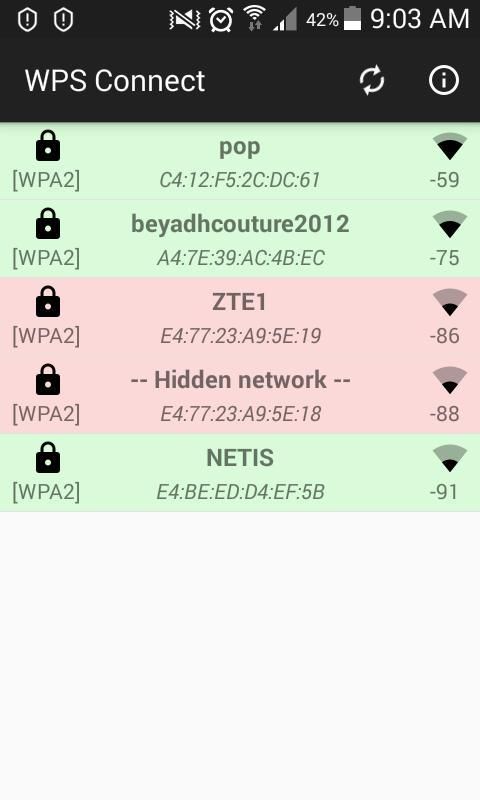 Ceux qui apparaissent avec un point d'interrogation ont le protocole WPS activé, mais le pin n'est pas connue, dans ce cas, l'application vous permet de tester avec le plus commun.
