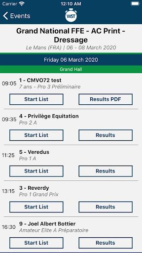 डब्लूएसटी एप्लिकेशन आपको स्टार्ट-सूची, लाइव और उन घटनाओं के परिणाम देखने की अनुमति देता है जिन्हें हम प्रबंधित करते हैं।