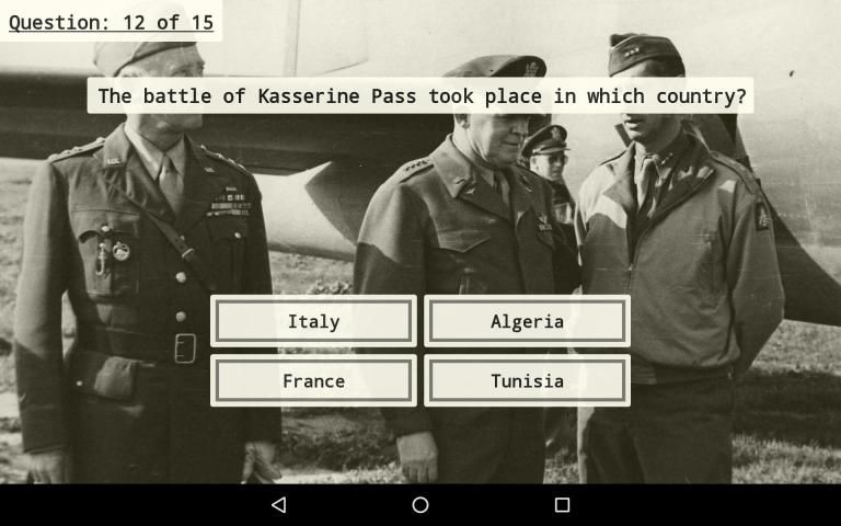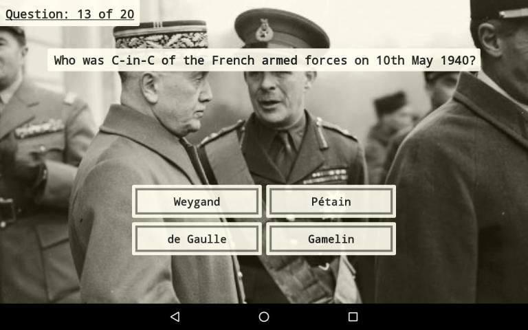 Do you consider yourself knowledgeable in all things World War II? Put your knowledge to the test and see how well you go in this free and simple to use quiz app!