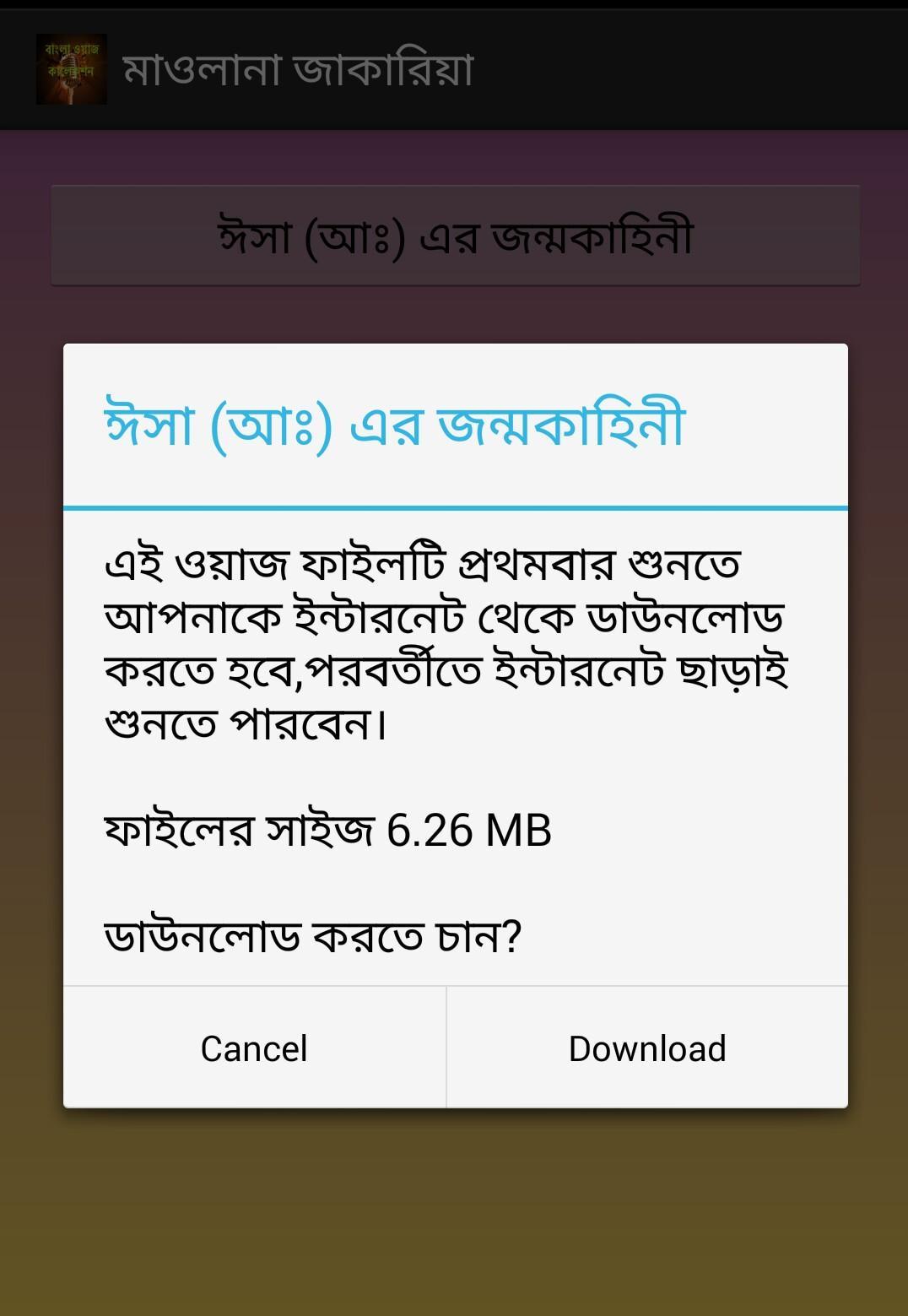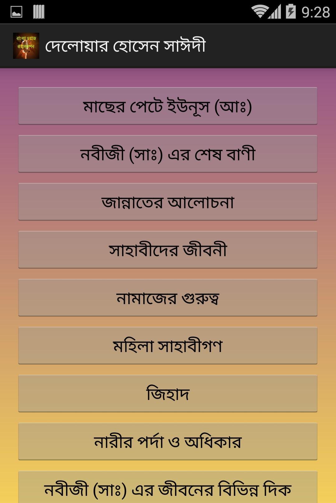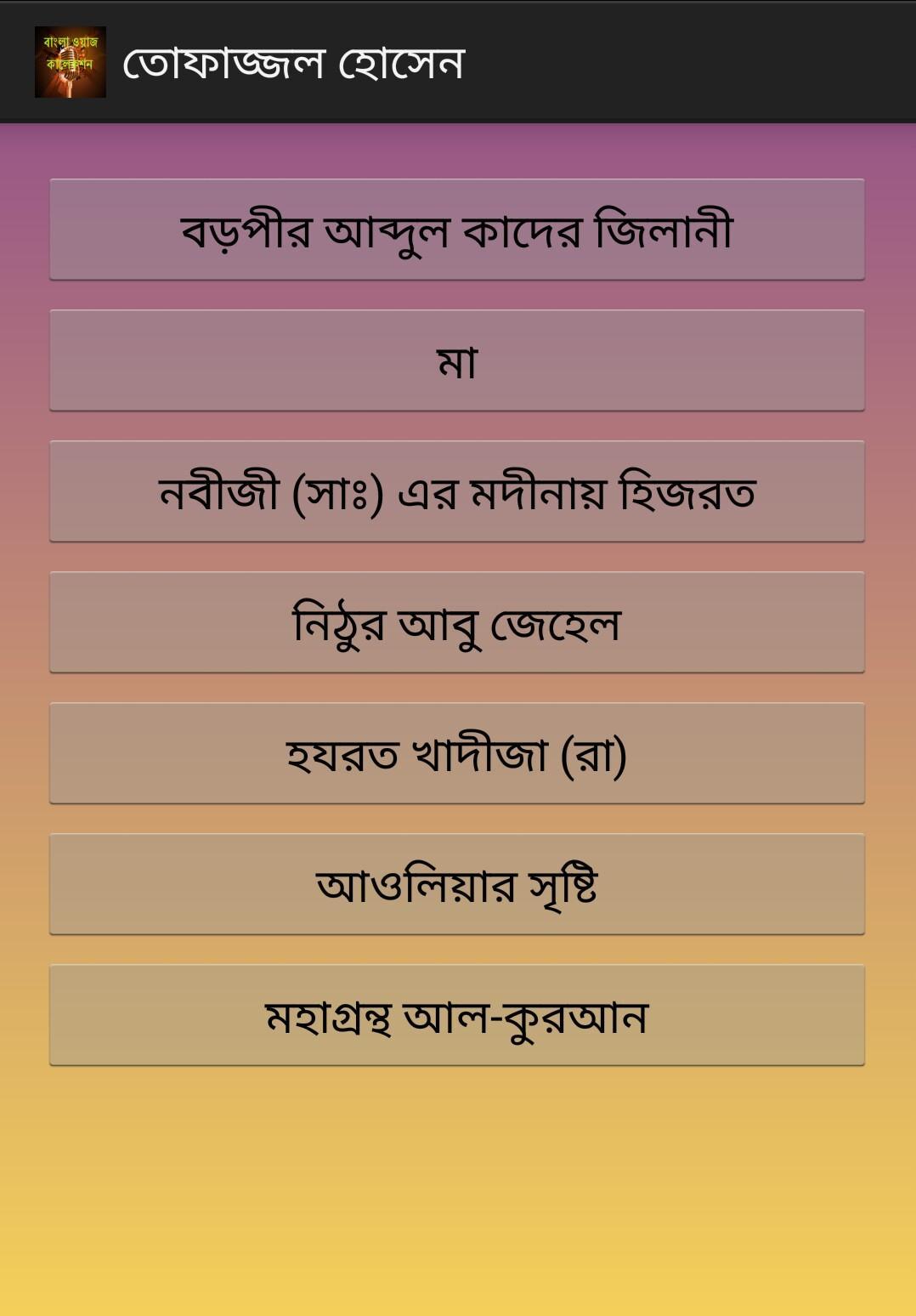 - নতুন নতুন ওয়াজ আপডেটের সুবিধা। হোমস্ক্রীন থেকে আপডেট বাটনে চাপার মাধ্যমে আমাদের সার্ভারে সংযুক্ত নতুন ওয়াজসমূহ যুক্ত হয়ে যাবে অ্যাপলিকেশনে।