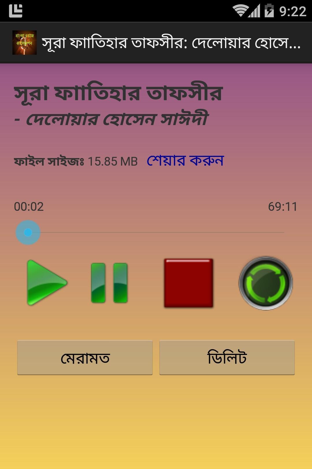 - ওয়াজ শোনার জন্য ইন্টারনাল মিডিয়া প্লেয়ার।