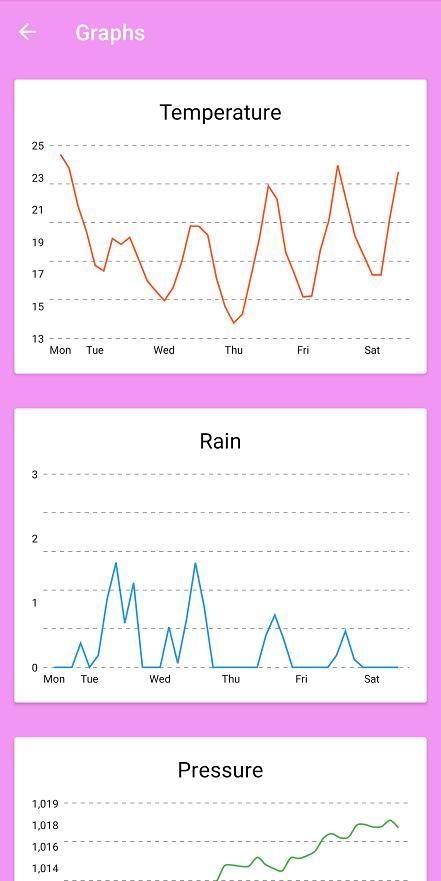 तापमान, हवा का दबाव, हवा की गति, वास्तविक समय में बारिश देखें